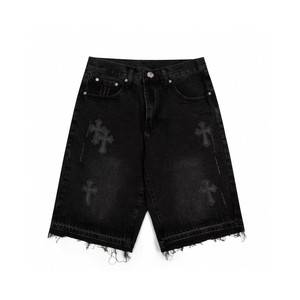 24SSクロムハーツ クロス刺繍 ダメージデニム ショートパンツ 5点パンツ カップルスタイル クロスボーダー