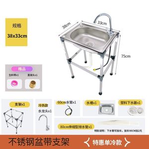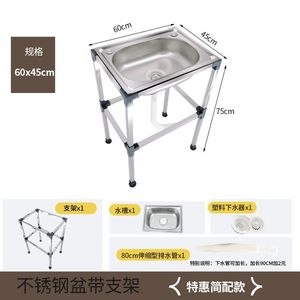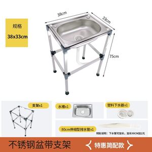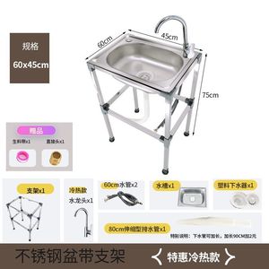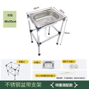 厨房简易不锈钢洗菜单槽支架加厚洗碗池一体洗手盆水池家用水槽