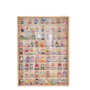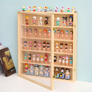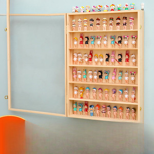 亚克力展示架泡泡玛特盲盒收纳实木手办收纳柜Molly展示柜挂墙