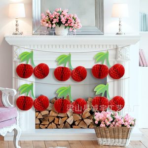 跨境樱桃生日派对装饰挂纸蜂窝樱桃中心装饰纸灯笼天花板水果派对