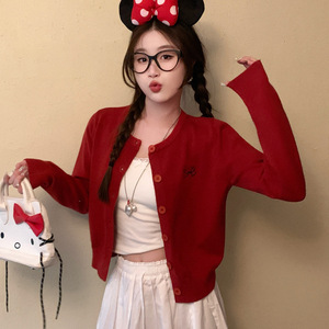 紫色毛针织开衫外套女2025新款外搭刺绣蝴蝶结独特针织毛衣上衣女