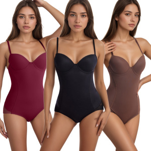 跨境吊带纯色塑身收腹连体衣女产后束腹收腰塑身胸罩托胸打底内衣