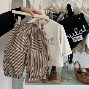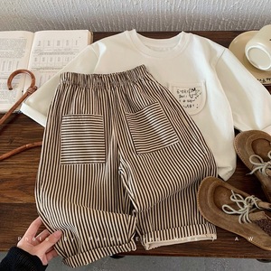 男童裤子条纹纯棉春秋休闲裤中小儿童2025男孩直筒长裤灯芯绒童装