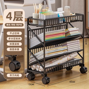 书架可移动桌边收纳架教室课桌旁学生放书本架子带轮置物架书立架