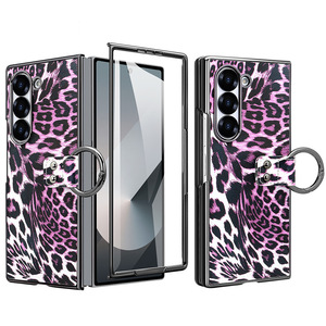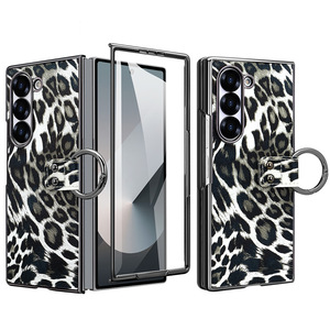 Samsung Fold6 携帯電話ケース、シェルとフィルム一体型携帯電話ケース Fold5 ヨーロッパとアメリカのファッションヒョウ柄リング携帯電話ケースに適しています。