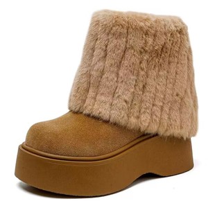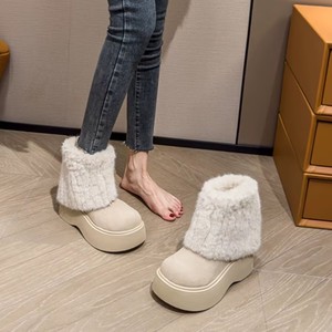 ネットセレブスノーブーツレディース2025冬新作ショートチューブニッチ厚底毛皮パンツブーツプラスベルベット暖かい綿靴