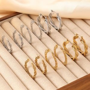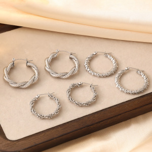 跨境欧美麻花圆形耳环不掉色复古轻奢女款钛钢耳扣不锈钢耳环耳圈