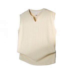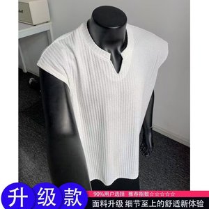 蛇仔螺纹坎肩背心男款夏季美式无袖v领t恤肌理感健身运动休闲背心