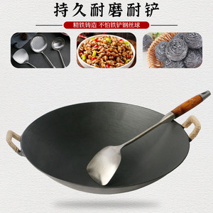 老式陆川生铁炒锅家用双耳传统锅农村柴火灶铁锅铸铁小炒菜锅火锅