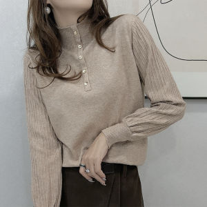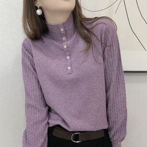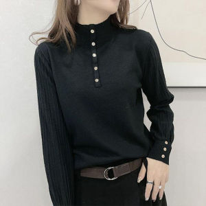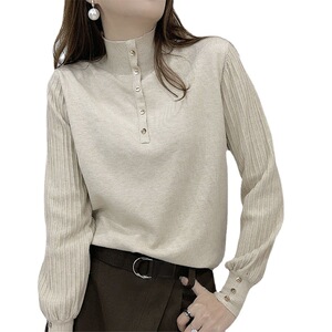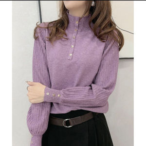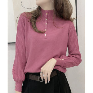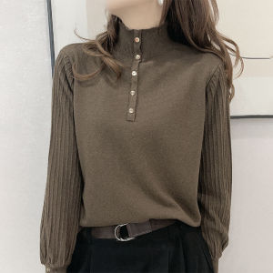 2023 秋冬新スタイル女性用袖セーター、スタイリッシュで暖かい韓国風ハーフタートルネック、ゆったりとしたランタンインナーニットボトムシャツ