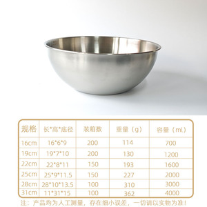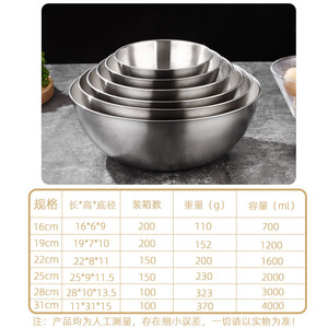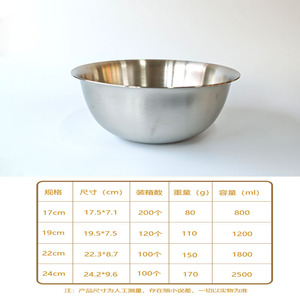 跨境304不锈钢打蛋盆商用食品级沙拉盆家用厨房多功能刻度料理盆