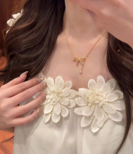 新款蝴蝶结镶钻项链女甜美锁骨链气质轻奢高级感小众设计时尚百搭