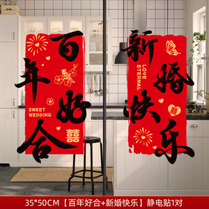 結婚式の特別なハッピーワードステッカー、書道静電ステッカー、窓の装飾、結婚式の部屋のレイアウト、窓ガラス、結婚式の車のハッピーワードステッカー、装飾