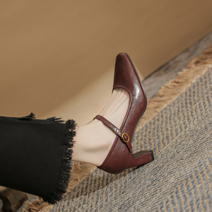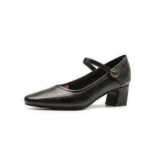 羊皮版法式复古黑色高跟鞋2025春季一字带通勤工作粗跟玛丽珍单鞋