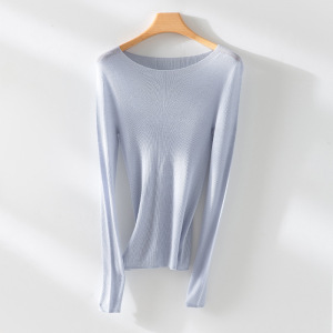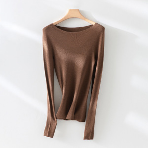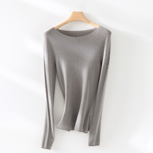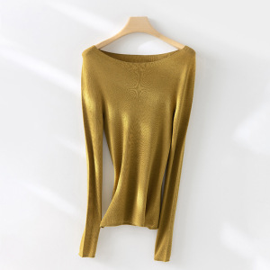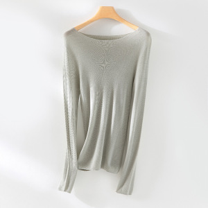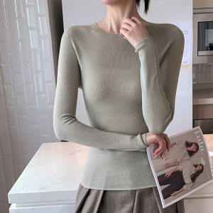 ワンラインネック長袖Tシャツトップスotwグリーンラベル揚子紡績ウールニットセーター秋の万能エレガントなインナーウェア女性用