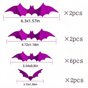 跨境12pcs彩色蝙蝠贴3D立体紫色橙色蝙蝠贴纸万圣节派对装饰墙贴
