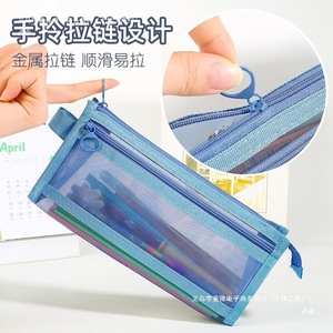 鉛筆バッグ透明メッシュ学生試験文具バッグ子供の汚れにくい鉛筆バッグ二層立体大容量