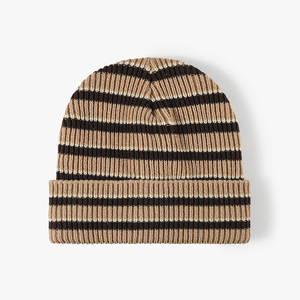 新款条纹秋冬加绒保暖毛线帽显脸小撞色针织帽时尚男士冷帽批发