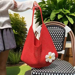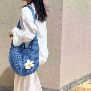 2025度假单肩包女海边托特慵懒休闲镂空大容量沙滩花朵包编织款