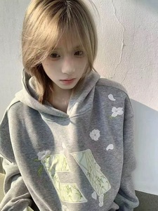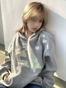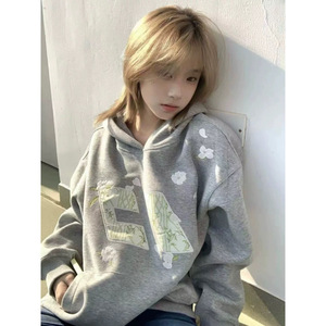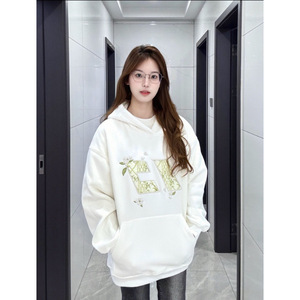 纯棉美式连帽刺绣卫衣秋冬新款重磅国潮慵懒复古外套加绒贴布上衣
