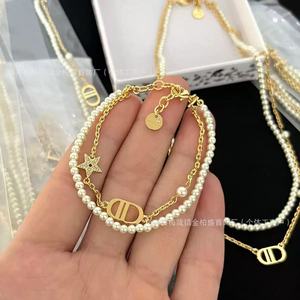 ディージア樹脂多元素ネックレス女性用クラシックCD文字パールイヤリングブレスレット高級鎖骨チェーンセットペンダント