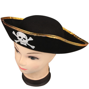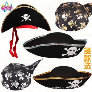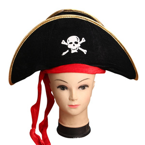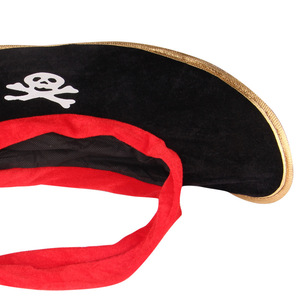 ハロウィン用品 カリブ海の海賊小道具 キャプテンハット フラット海賊ハット 赤いベルト付き 赤いロープ付き スカルハット
