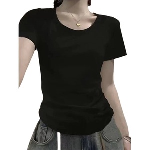 韓国風シックなスリムで甘くてスパイシーな無地Tシャツ半袖ラウンドネックスリムフィットカジュアルインナーウェアインストップスAmazon