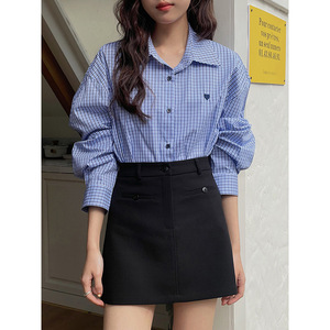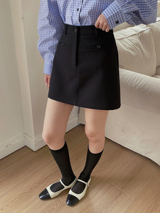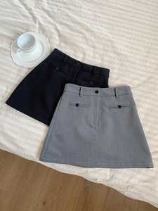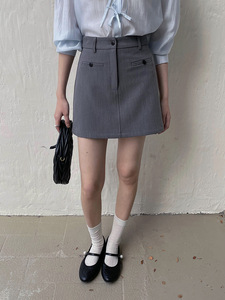 [Ge Ming] 韓国通勤フロントポケットスーツスカートレディース夏新作ハイウエストAラインスカートY3793F