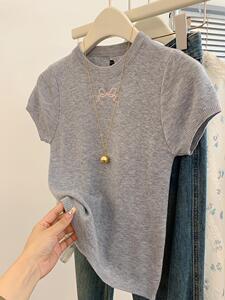 小清新蝴蝶结刺绣薄款针织短袖T恤女2025夏装新款露背马甲上衣