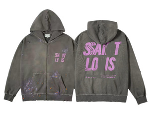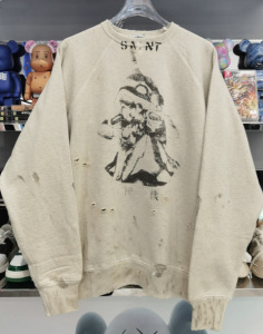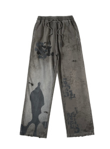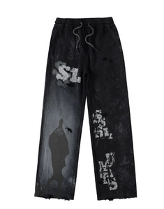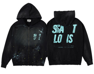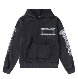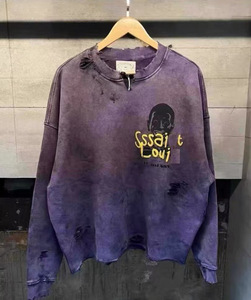 欧美潮流涂鸦印花做旧连衣帽衫复古休闲宽松卫衣男女潮牌帽衫卫裤