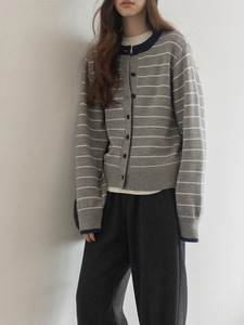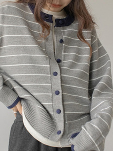 2025 秋冬新韓国スタイルコントラストストライプニットカーディガン女性のシンプルなルーズ痩身怠惰なスタイルのセータージャケット