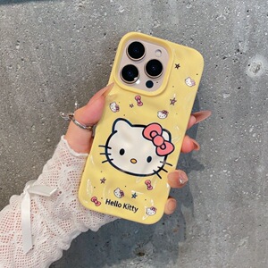 卡通蝴蝶结kt猫适用苹果17promax手机壳15pro新款14女13可爱12/11