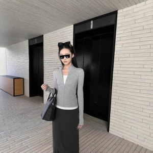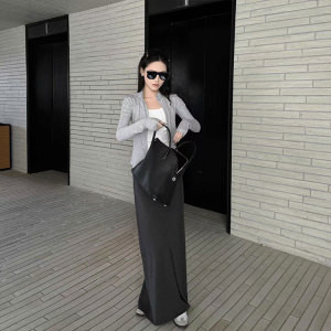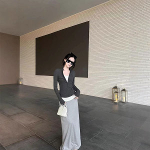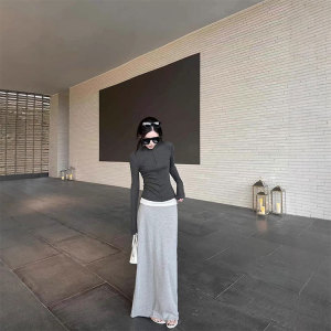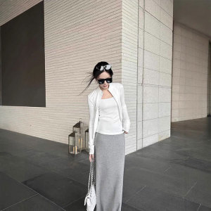 5werkwen 慵懒日常 两色基础宽松显瘦慵懒针织半身裙包臀裙长裙