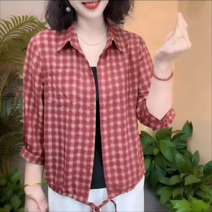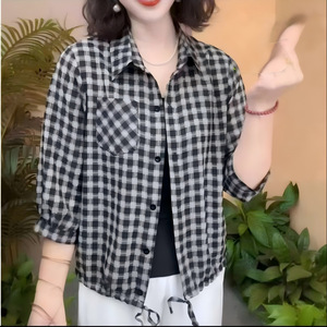 2025 秋の新レトロチェック柄ラペルシングルブレストルーズカジュアルスリム女性の長袖シャツジャケット