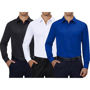 跨境Mens Dress Shirts way Streth Long Sleeve Collared