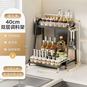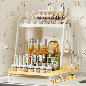 厨房调料品置物架台面抽拉式调味料用品家用油盐酱醋双层收纳架子