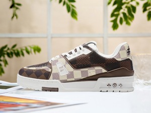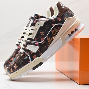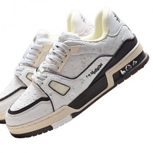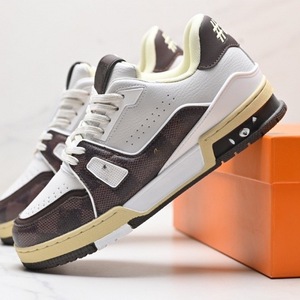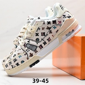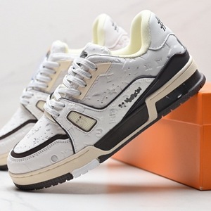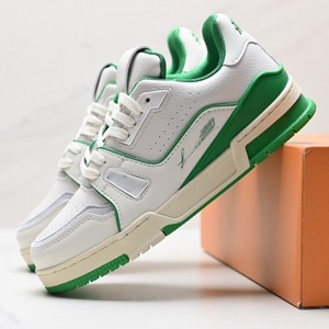 高端版本白水泥板鞋情侣款百搭时尚休闲鞋老花厚底低帮真皮小白鞋