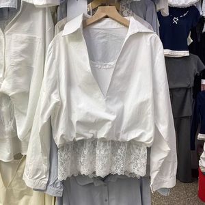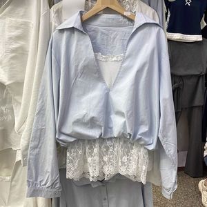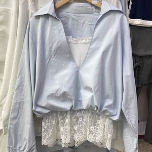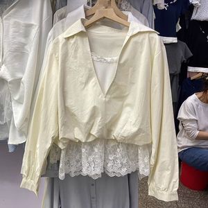 韩系设计感假两件蕾丝拼接长袖衬衫2025夏季新款宽松别致上衣女潮