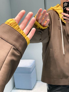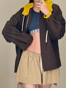 【深圳南油】m长袖外套字母贴布绣撞色拼接连帽男女同款夹克外套