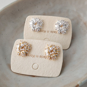 ゴールデンジルコン花火スタッドピアス-925シルバー針