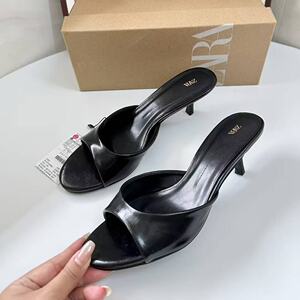 ZA2025 新しい夏のヨーロッパとアメリカンスタイルのフィッシュマウスオープントゥハイヒールサンダル、浅い口と背中の空のファッションハーフスリッパ