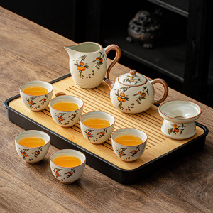 汝窑柿柿如意西施壶11件套+茶盘--简装