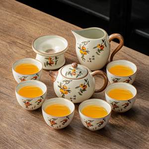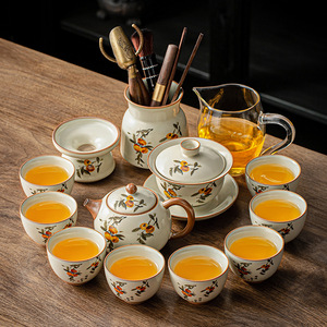 汝窑柿柿如意西施壶+盖碗14件套--简装