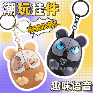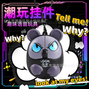 新款“回答我”仓鼠外观网红趣味语录发声发光钥匙按键钥匙扣挂件