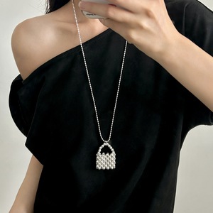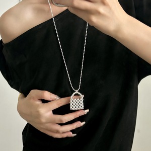 韩国博主同款银色串珠包包长项链女轻奢小众简约设计感毛衣链配饰