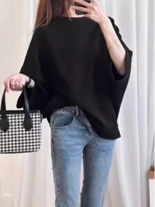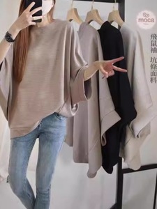 大阪新款飞鼠袖大码女装T恤宽松休闲显瘦原板大坑条面料2025爆款