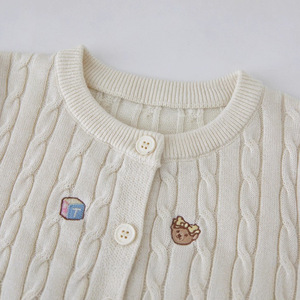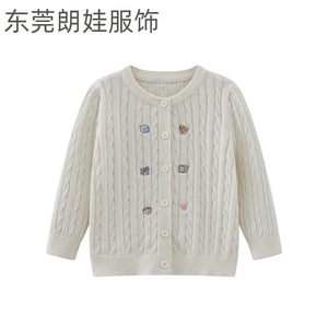兒童刺绣纯棉针织软糯开衫卡通麻花秋冬新款外穿女宝毛衣韩版外套