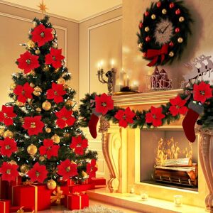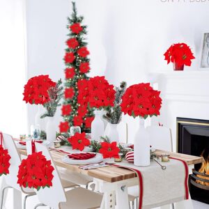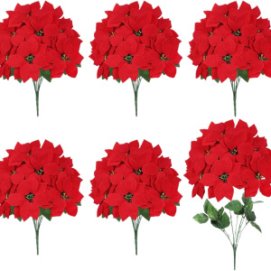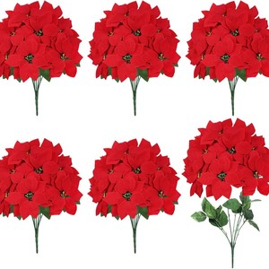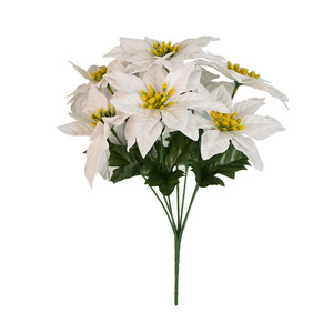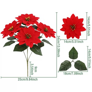 跨境圣诞热销仿真一品红圣诞花人造绒布婚庆圣诞树装饰7头5头装饰