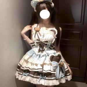 杏蓝粉色自带胸垫裙子+小熊胸针