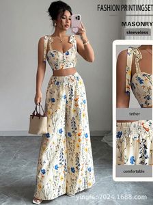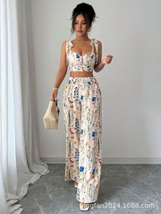 亚马逊TikTok拼多多外贸跨境欧美女装新款印花吊带背心套装夏季
